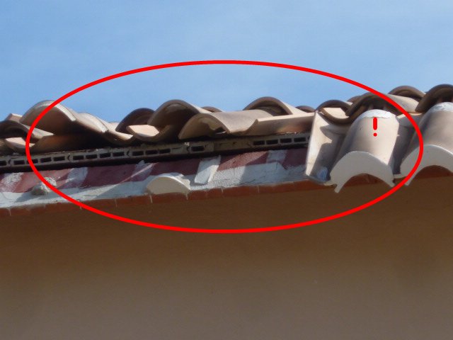 Incorrect tile overlap is a relatively common roofing problem in Spain and can lead to either water ingress or the blowing off of the tiles concerned, during windy weather. There is a correct overlap for all tiles (which varies depending on location, as does pitch) and unless this is maintained consistently on a roof then, inevitably, there will be problems – possibly resulting in the necessity to relay the entire roof. This is an issue that I have commonly found with newly constructed properties!